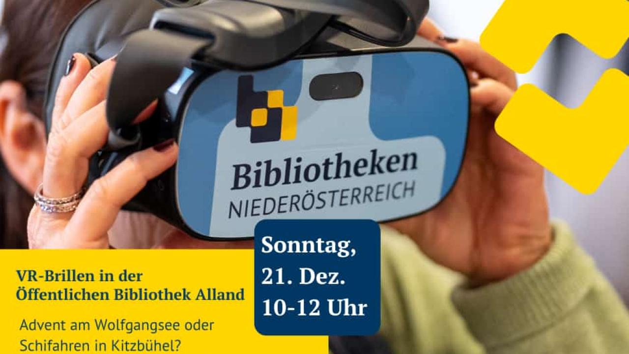 Foto: VOGUS 21.12.2025 VR-Brillen bei uns in der Bibliothek Öffentlichen Bibliothek Alland VR-Brillen Advent am Wolfgangsee oder Schifahren in Kitzbühel?Virtuelle Reisen zum Kennenlernen. Sonntag, 21. Dez. 10:00 - 12:00 Uhr Foto: VOGUS